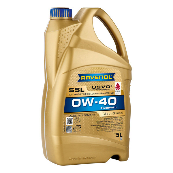 Полностью синтетическое ПАО масло RAVENOL SSL 0W-40 для легковых автомобилей Audi, BMW, Chrysler, Fiat, Mercedes-Benz, Porsche, Renault, Skoda, VW и других, требующих применения моторных масел с вязкостью SAE 0W-40 уровня качества ACEA A3/B4 с высоким щелочным числом, и эксплуатируются в условиях экстремально низких температур.