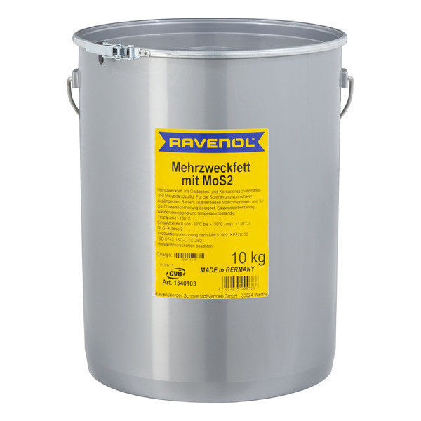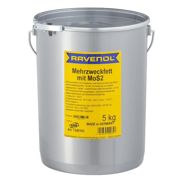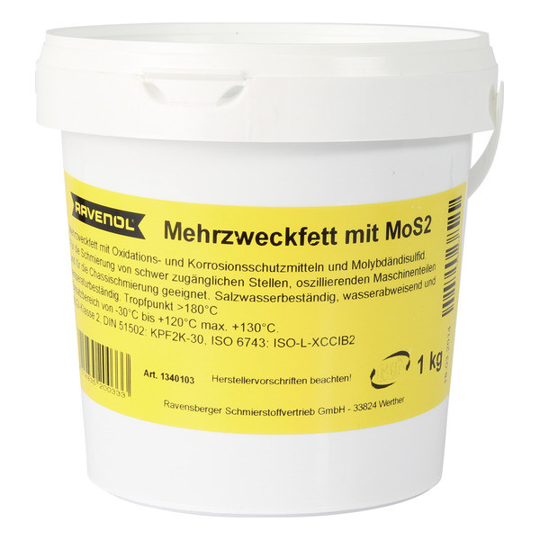 RAVENOL Mehrzweckfett mit MoS2 предназначена используется для смазки труднодоступных мест, которые часто забываются смазать во время технического обслуживания и также для смазки деталей вращающегося оборудования.