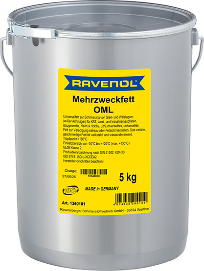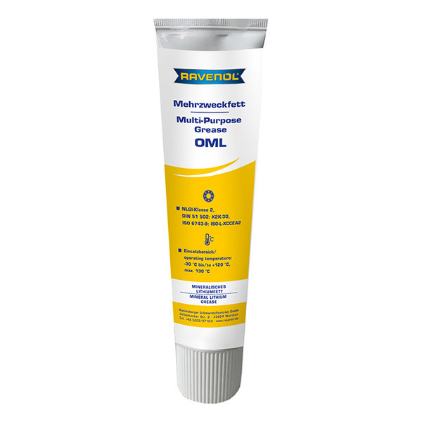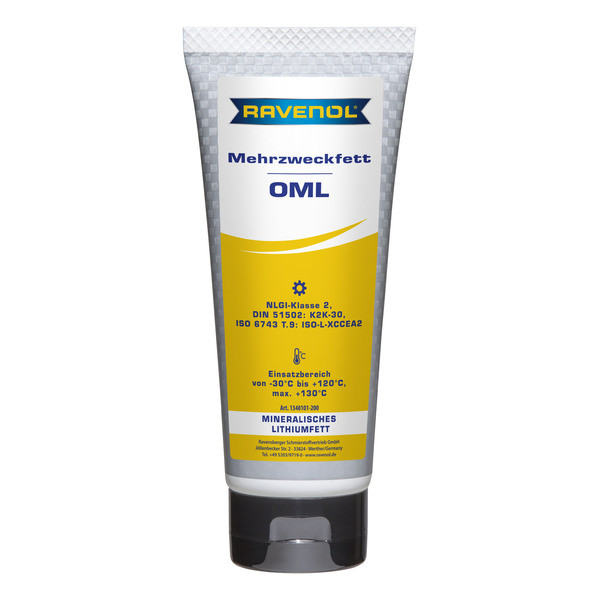 RAVENOL Mehrzweckfett OML - универсальная водостойкая пластичная смазка на минеральной основе, с использованием литиевого мыла в качестве загустителя, обеспечивающая защиту от окисления и коррозии.